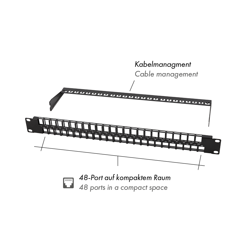 - Unbestücktes Patchpanel für 48 Keystone Module auf 1 HE