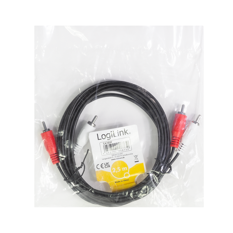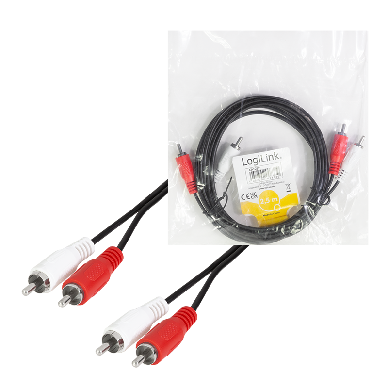 Verbinden Sie Geräte mit Cinch-Buchsen, wie etwa DVD-Player mit Ihrer Stereoanlage. Das Stereo Anschlusskabel von LogiLink mit einer Länge von 2,5 m.