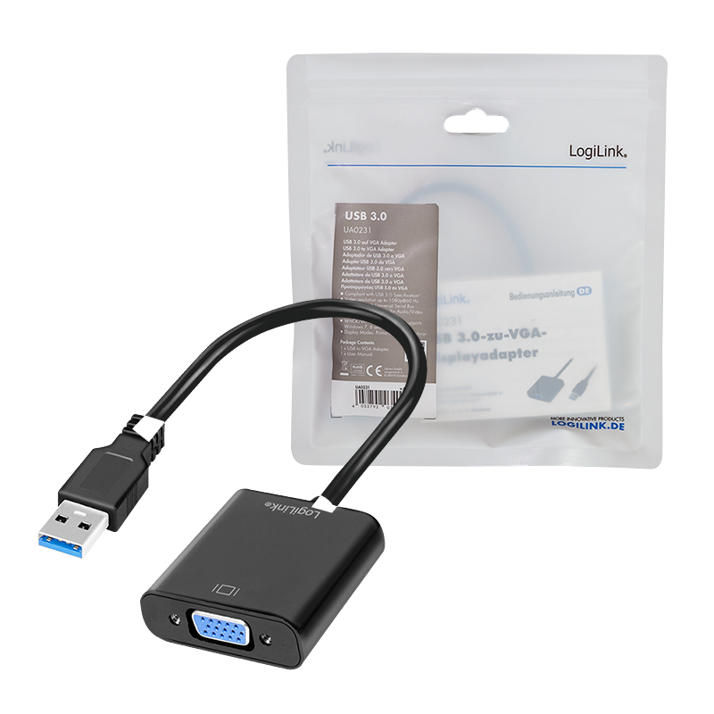 Produktinformationen "USB 3.0-Adapter USB-A/M zu VGA/F, 1080p, schwarz, 0,15 m"