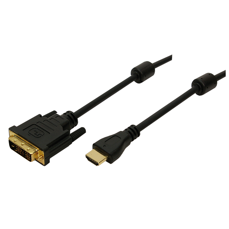 HDMI-Kabel, A/M zu DVI/M, 1080p, 2x Ferrit, bidirekt, schwarz, 3 m