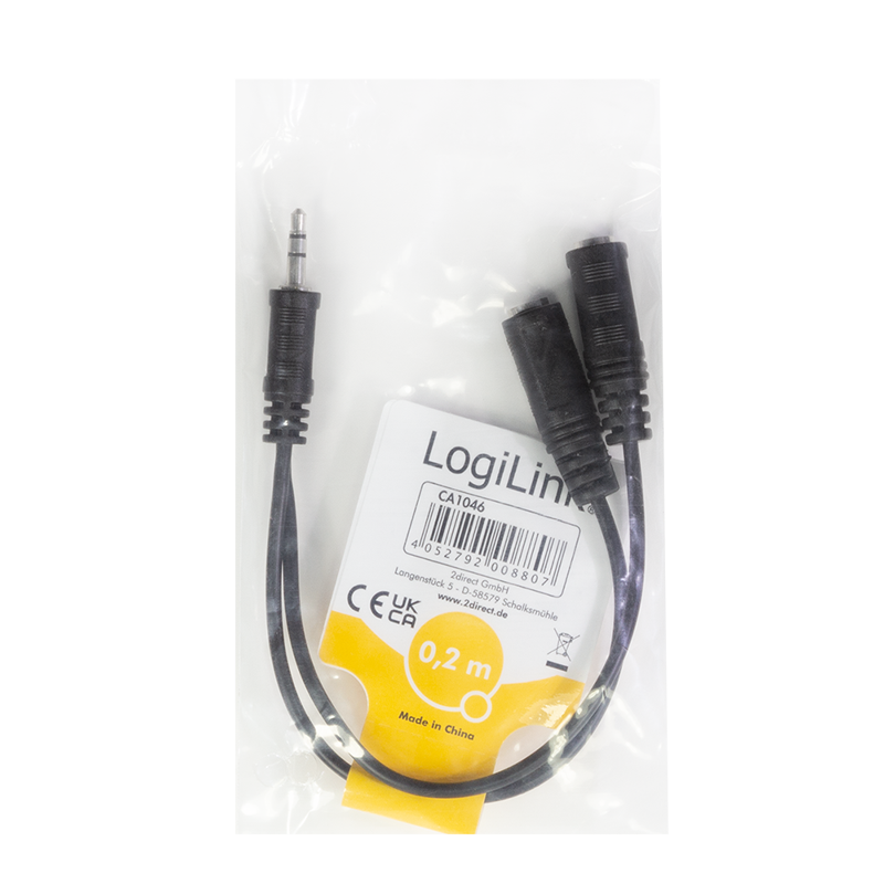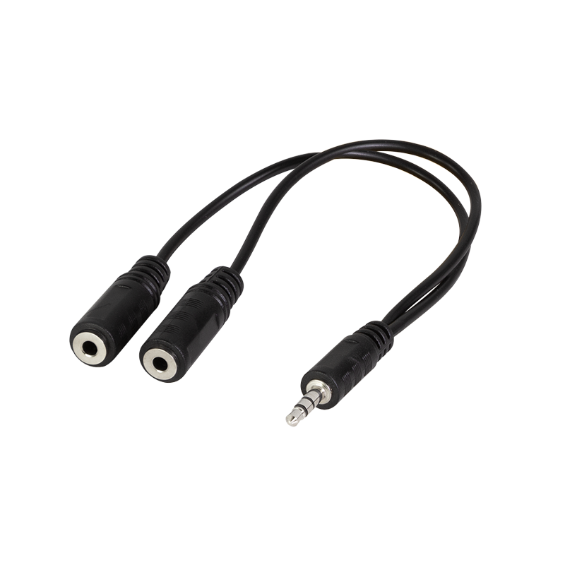 Produktinformationen "Audio-Kabel, 3,5 mm 3-Pin/M zu 2x 3,5 mm 3-Pin/F, schwarz, 0,2 m"