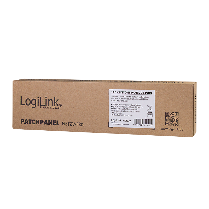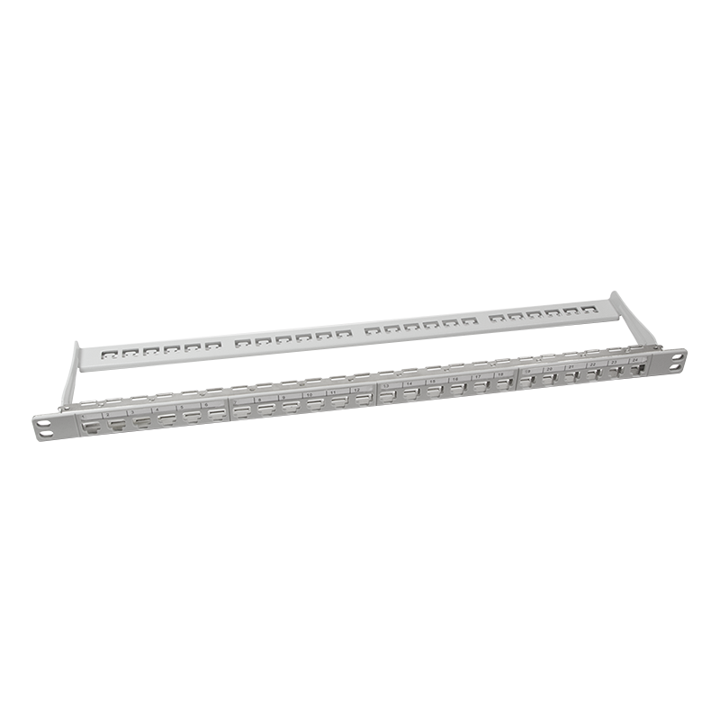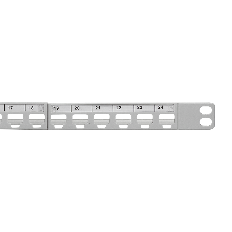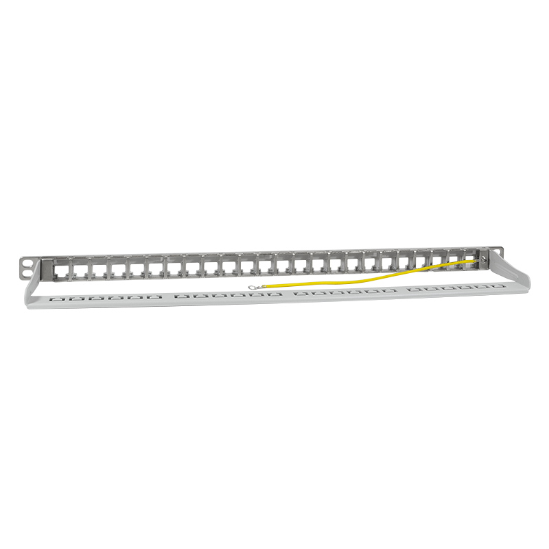 19" Verteilerfeld für die Aufnahme von maximal 24 Modulen mit schmaler Bauform. Die Module rasten ohne weiteres Montagezubehör mühelos in den 19" Verteilerfeld-Rahmen ein. Das zusätzliche Innenblech sorgt für eine ganzheitliche Schirmung. Dieses Panel eignet sich optimal für geschirmte Cat.6 oder Cat.6A 10G Keystone Module mit einer max. Breite von 15,8 mm.