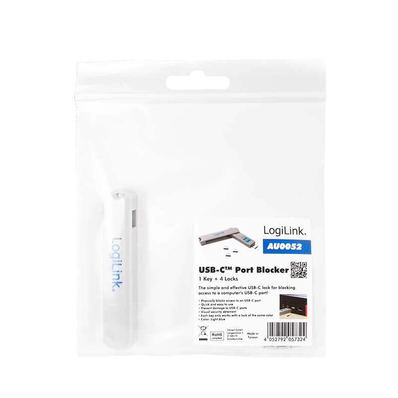 Das USB-C-Port Schloss von LogiLink ist ein einfacher und effektiver Weg, um den USB-C-Port an einem Computer zu blockieren. Netzwerkadministratoren können mit diesem kleinen und praktischen Gerät verhindern, dass der Port genutzt wird und somit das Kopieren von sensiblen Daten oder dem Übertragen von Viren per MP3-Player, USB Sticks und anderen Speichergeräten vorzubeugen.