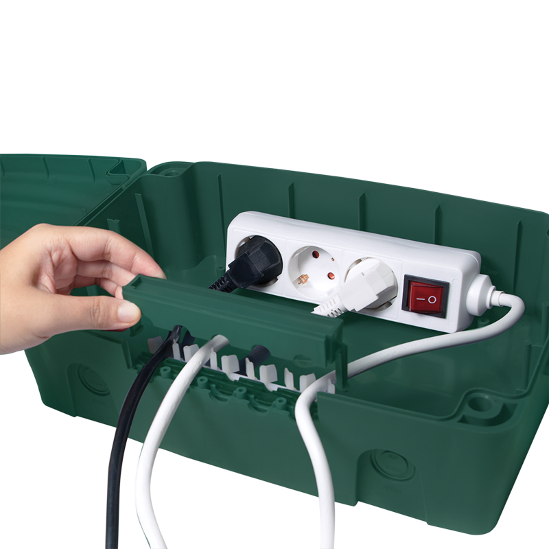 Ideal für die Verwendung von Beleuchtungsanlagen, Unterhaltungselektronik und bei der Gartenarbeit. IP54 Schutz.
