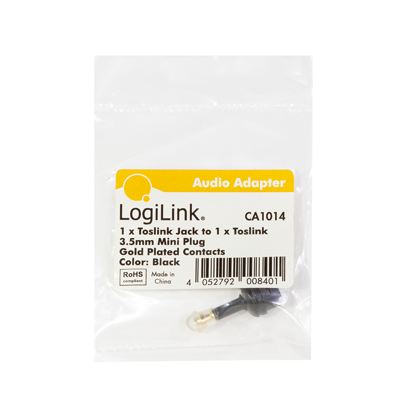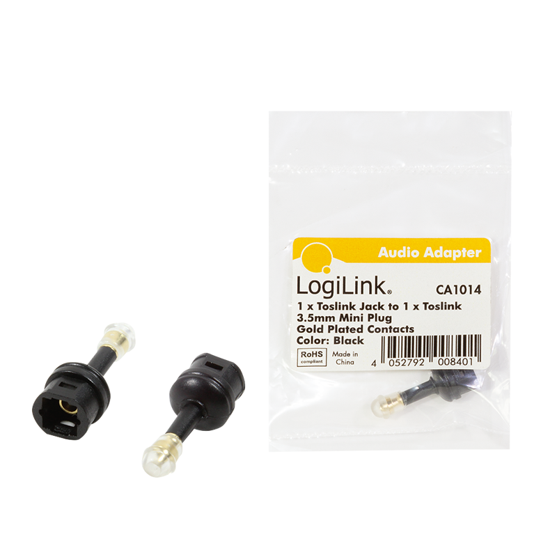 Dieser Toslink Adapter mit vergoldeten Kontakten wandelt das Ende eines Standart-Toslink-Kabel in einen mini Toslink-Stecker (3,5 mm) um.
