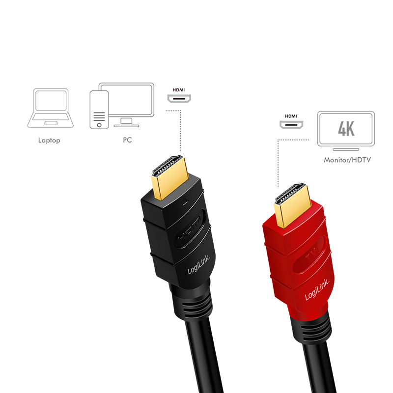 Dieses aktive, mit einem Signalverstärker ausgestattete HDMI-Kabel von LogiLink, eignet sich ideal, um Video- und Audiodaten mit hoher Bandbreite über längere Distanzen zu übertragen. Mit dem integrierten Signalverstärker gewährleistet es verlustfreie Übertragung über die gesamte Kabellänge mit UHD-Auflösungen von bis zu 4K/60 Hz. Der ideale Einsatz für Heim, Meeting- oder Konferenzräume sowie innerhalb von Gebäuden stellen nur einige der Einsatzgebiete dar. Die benutzerfreundliche Installation erfolgt hierbei durch einfaches Plug and Play, einstecken und sofort höchste Bildqualität genießen. Unterstützt werden zahlreiche Standards, wie z.B. HEC, CEC sowie Full HD in 3D, HDR, Deep Color und Multistream-Support. Im Audiobereich werden unter anderem ARC, DTS-HD Master Audio oder Dolby TrueHD sowie viele weitere Audioformate unterstützt.