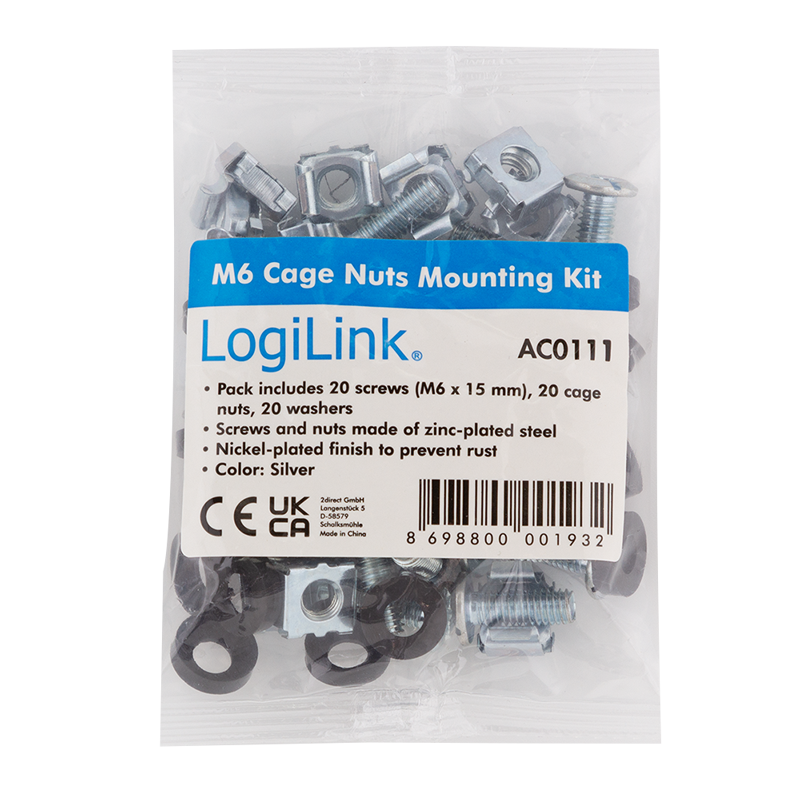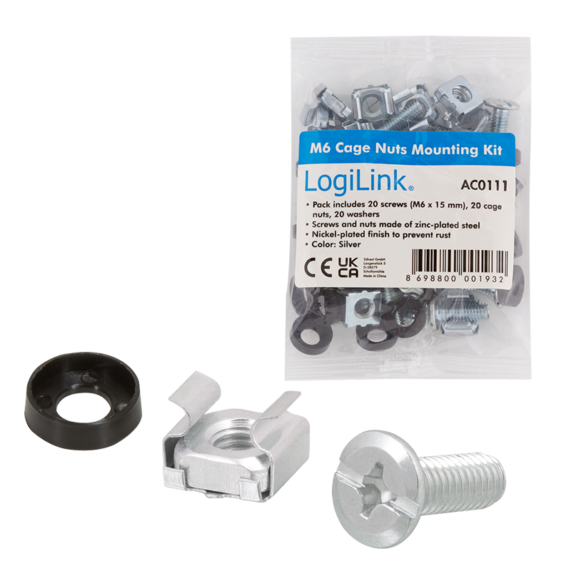 Diese Packung mit 20 Stück Montageschrauben und Käfigmuttern dient zur sicheren Befestigung von Server-, Netzwerk-, AV- und anderen Rackmount-Geräten in Ihrem Server-Rack oder Netzwerkschrank. Die Packung enthält 20 Schrauben, 20 Käfigmuttern und 20 Unterlegscheiben. Damit haben Sie hochwertiges Befestigungsmaterial für jedes Rack, an dem Sie arbeiten.