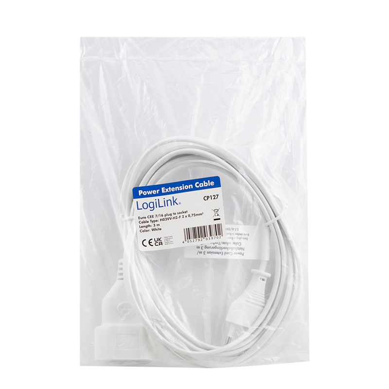 Netzkabelverlängerung - Verlängern Sie bequem Ihre Endgeräte mit Standard Eurostecker um die gewünschte / benötigte Länge mit den Verlängerungen von LogiLink.