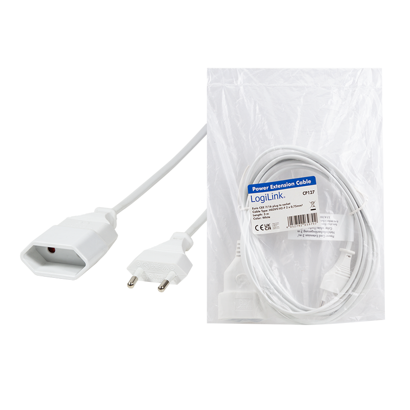 Produktinformationen "Netzkabelverlängerung, CEE7/16, weiß, 3 m"