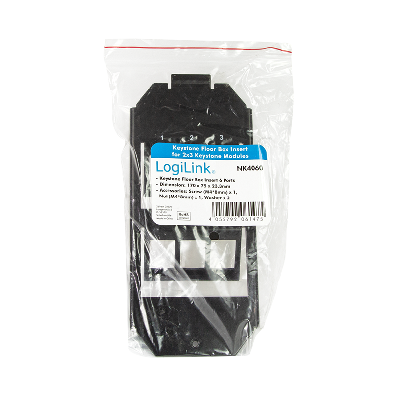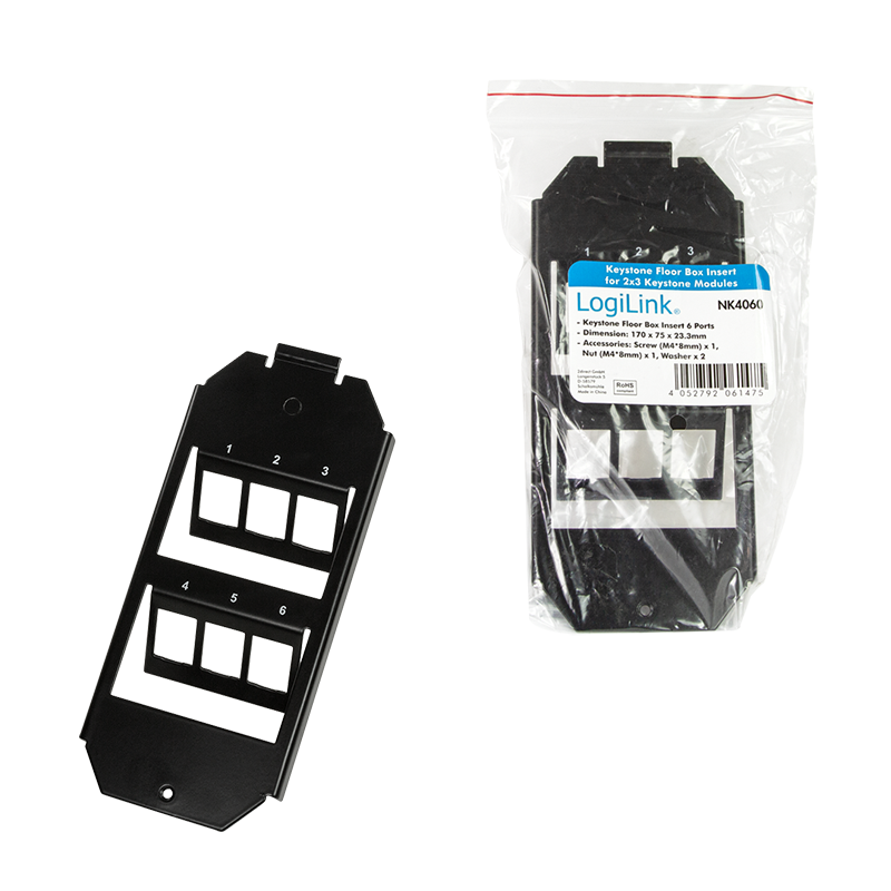 Dieser Montageträger von LogiLink eignet sich für den Einbau von bis zu 6 Netzwerk- oder Multimedia Keystone Modulen in Bodentanks mit einer Systemlänge von 165 mm. Die Montage ist denkbar einfach, lediglich die Abmessungen müssen beachtet werden, um den passenden Einsatz auszuwählen.