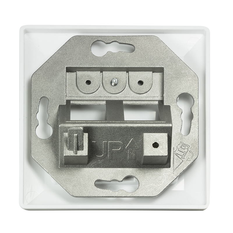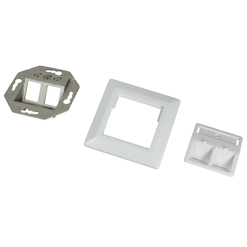 UAE Leerdose bestehend aus Zentralplatte, Außenblende und Einbaurahmen zur Aufnahme von Keystone-Modulen mit Einrastmontage. Geeignet für handelsübliche Keystone-Module, egal ob für Netzwerk- oder Multimedia- Anwendungen. Ideal für die Unterputzmontage, aber auch zur Aufputzmontage geeignet bei Verwendung des optionalen Aufputz-Leergehäuses (Module u. Aufputzgehäuse nicht im Lieferumfang).