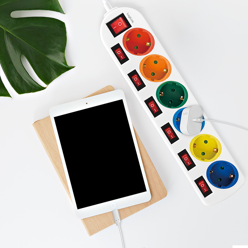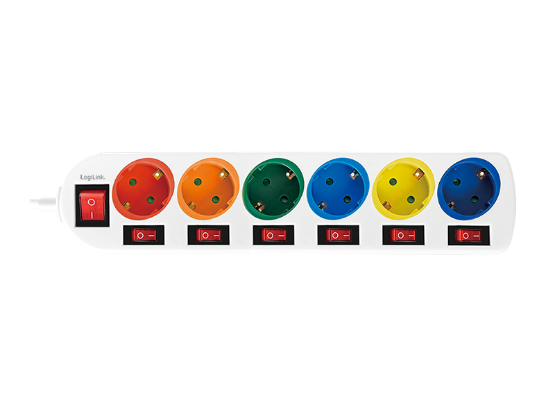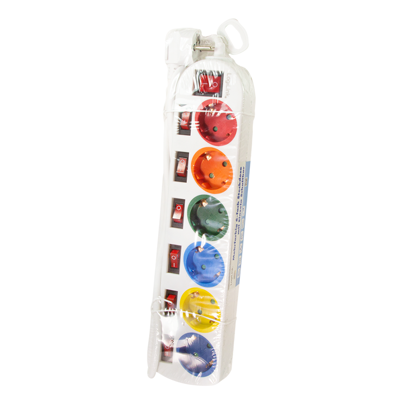 Produktinformationen "Steckdosenleiste 6-fach mit 7 Schaltern, 6x CEE 7/3, mehrfarbig"