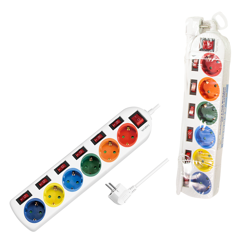 Steckdosenleiste 6-fach mit 7 Schaltern, 6x CEE 7/3, mehrfarbig