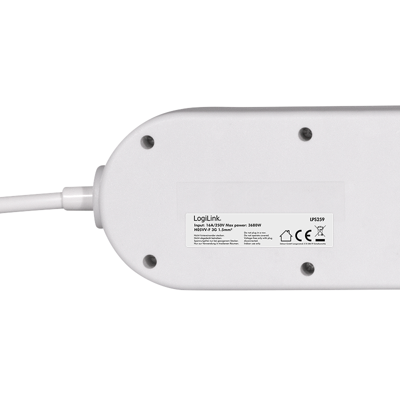Egal ob als Verlängerung oder als Option um mehr Geräte an den Strom anschließen zu können, die Steckdosenleiste LPS259 von LogiLink ermöglicht Ihnen beides. Die 6 Schutzkontaktbuchsen sind im 45° Winkel angeordnet und erleichtern somit das Anschließen von Winkelsteckern. Jede Steckdose ist einzeln schaltbar, da jede Buchse über einen eigenen beleuchtetet EIN/AUS Schalter verfügt. Für ein einfaches und schnelles Ausschalten der gesamten Leiste sorgt ein extra EIN/AUS Schalter, der wie die Einzel-Schalter ebenfalls beleuchtet ist und man so auch im Dunkeln leicht erkennen kann. Zusätzlich verfügt die LPS259 über Buchsen mit erhöhtem Berührungsschutz. Mit der Mehrfachsteckdosenleiste von LogiLink gewinnen Sie einen praktischen Helfer für jeden Raum, denn dank der 1,5m Kabellänge haben Sie nun noch mehr Spielraum beim Platzieren Ihrer Geräte, sei es Zuhause oder im Büro.