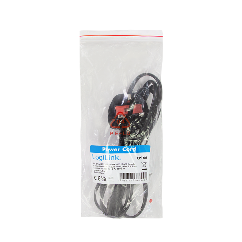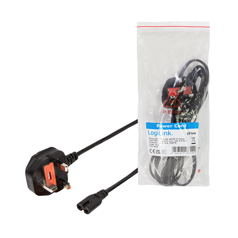 Das LogiLink Netzkabel verfügt über einen Commonwealth-Stecker (BS 1363) und einen Kleingeräte-Stecker (IEC C7). Ideal als Stromkabel für Notebook-Netzteile oder elektronische Geräte, die in Commonwealth Steckdosen angeschlossen werden sollen.