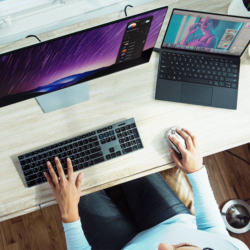 - Verbinden Sie bis zu zwei Geräte wie Laptops, Computer oder Tablets
