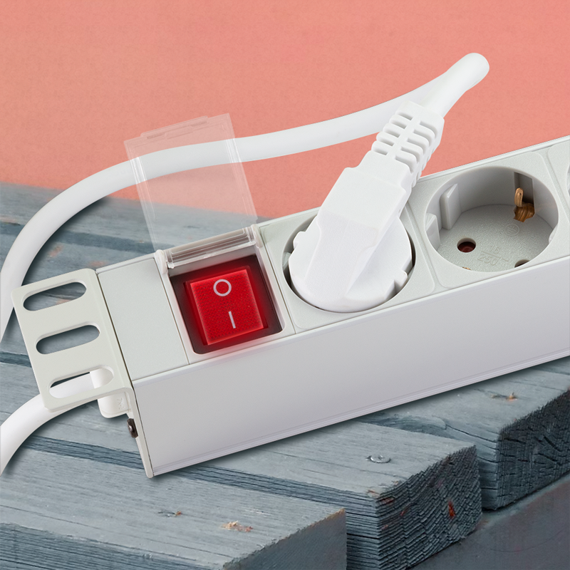 - Steckdosenleiste zur Montage am 19"-Profilrahmen (1 HE)