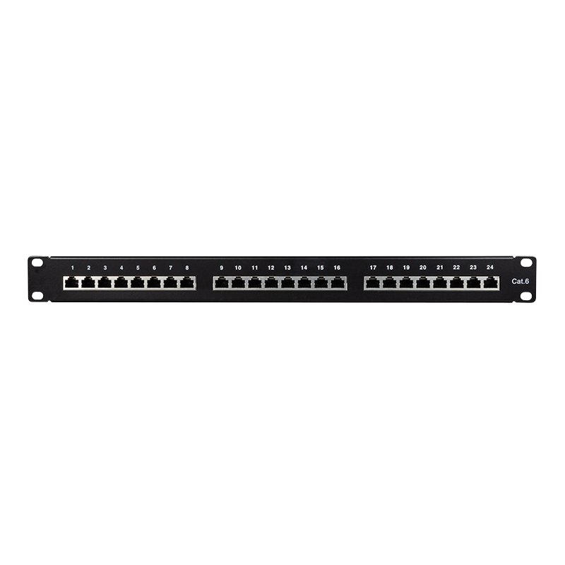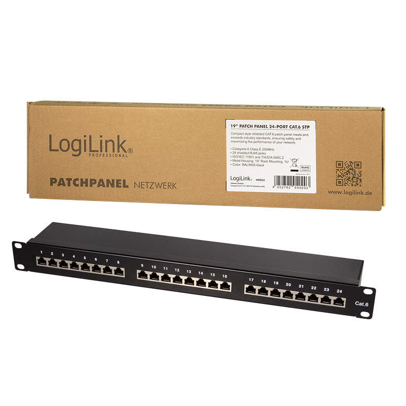 Cat.6 Patchpanel 24 Ports geschirmt, 19 Zoll Einbau, schwarz