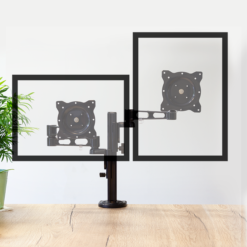 Befestigen Sie Ihren TV- und Computer-Monitor direkt am Schreibtisch. So können Sie auch dort Ihre Bildschirme mit voller Bewegungsfreiheit nutzen und sie nach Belieben neigen, schwenken oder drehen.