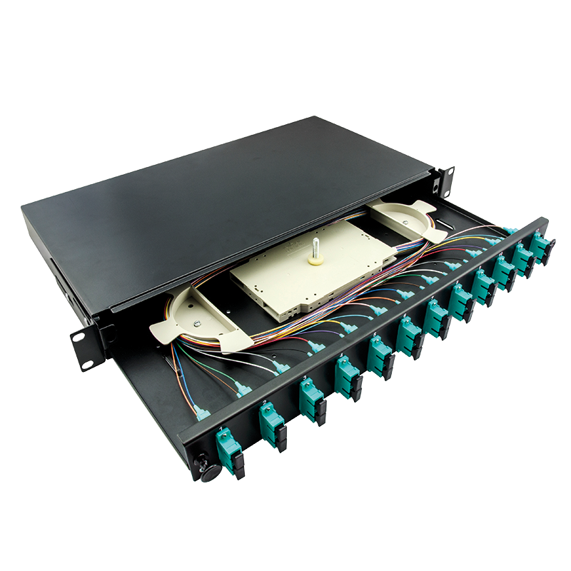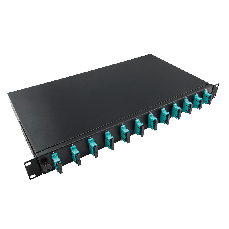 - Komplett bestücktes 12 Port SC-Duplex Patch Panel, OM3