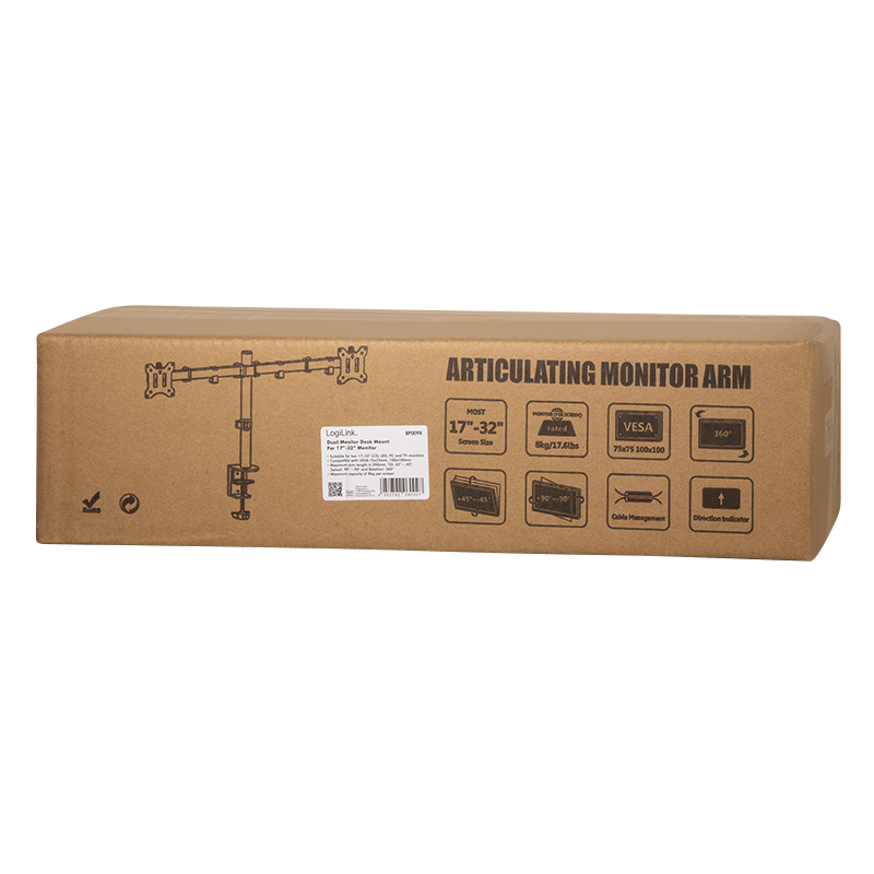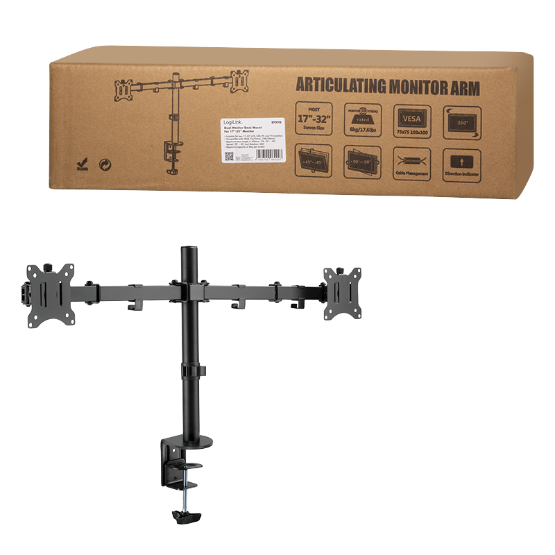 Monitorhalterung 2-fach, 17–32", Armlänge: je 390 mm