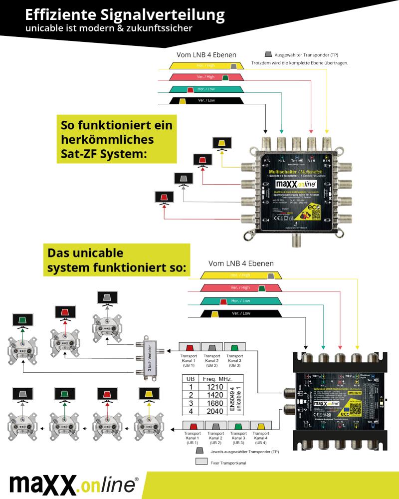 Produktinformationen "unicable Multischalter 1-2 Satelliten & 32 Teilnehmer kaskadierbar"