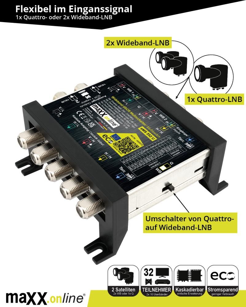 Eingänge: Über 2x Wideband- oder 1x Quattro-LNB
